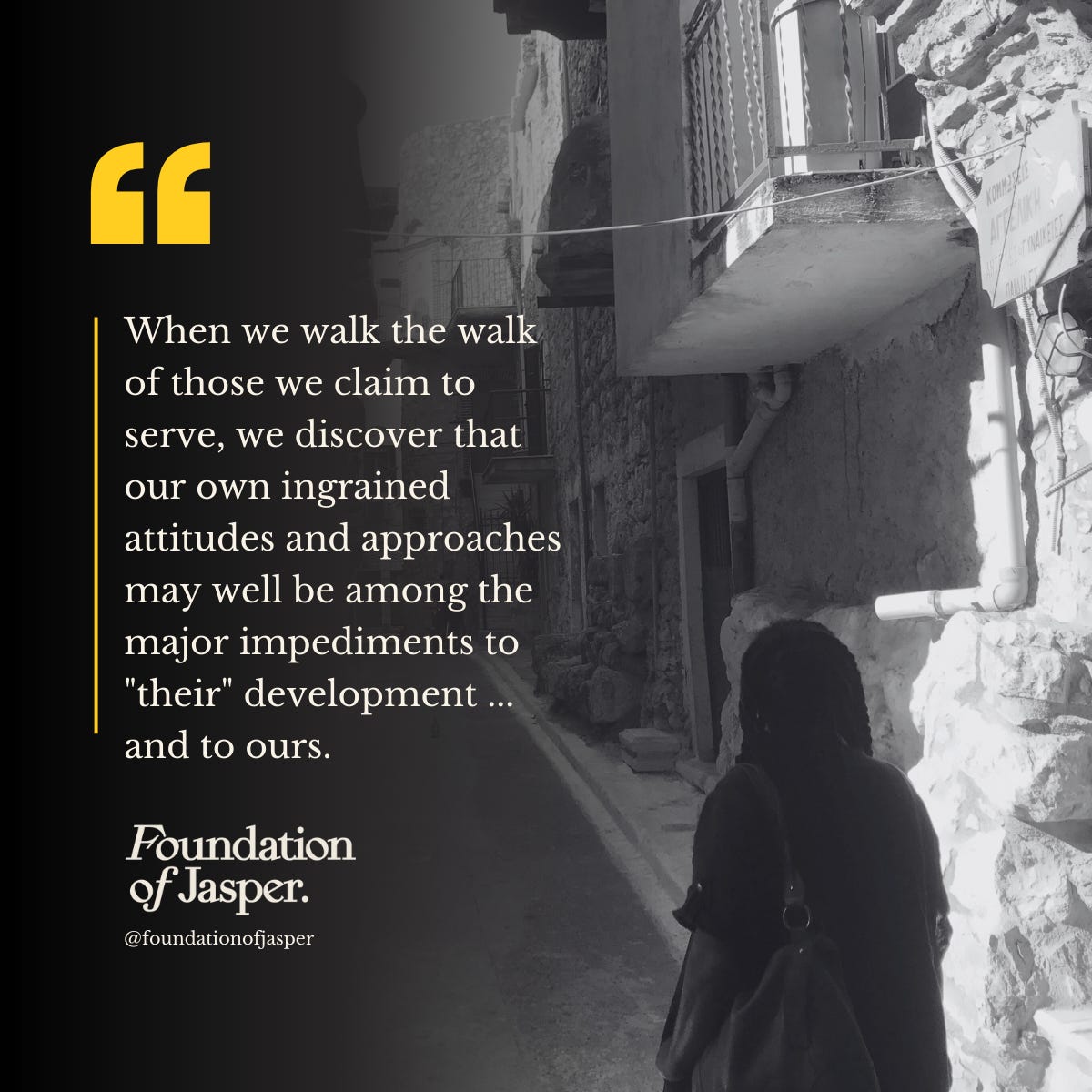 ▪️When we walk the walk of those we claim to serve, we discover that our own ingrained attitudes and approaches may well be among the major impediments to “their” development ... and to ours.